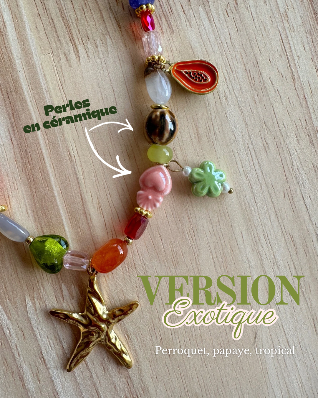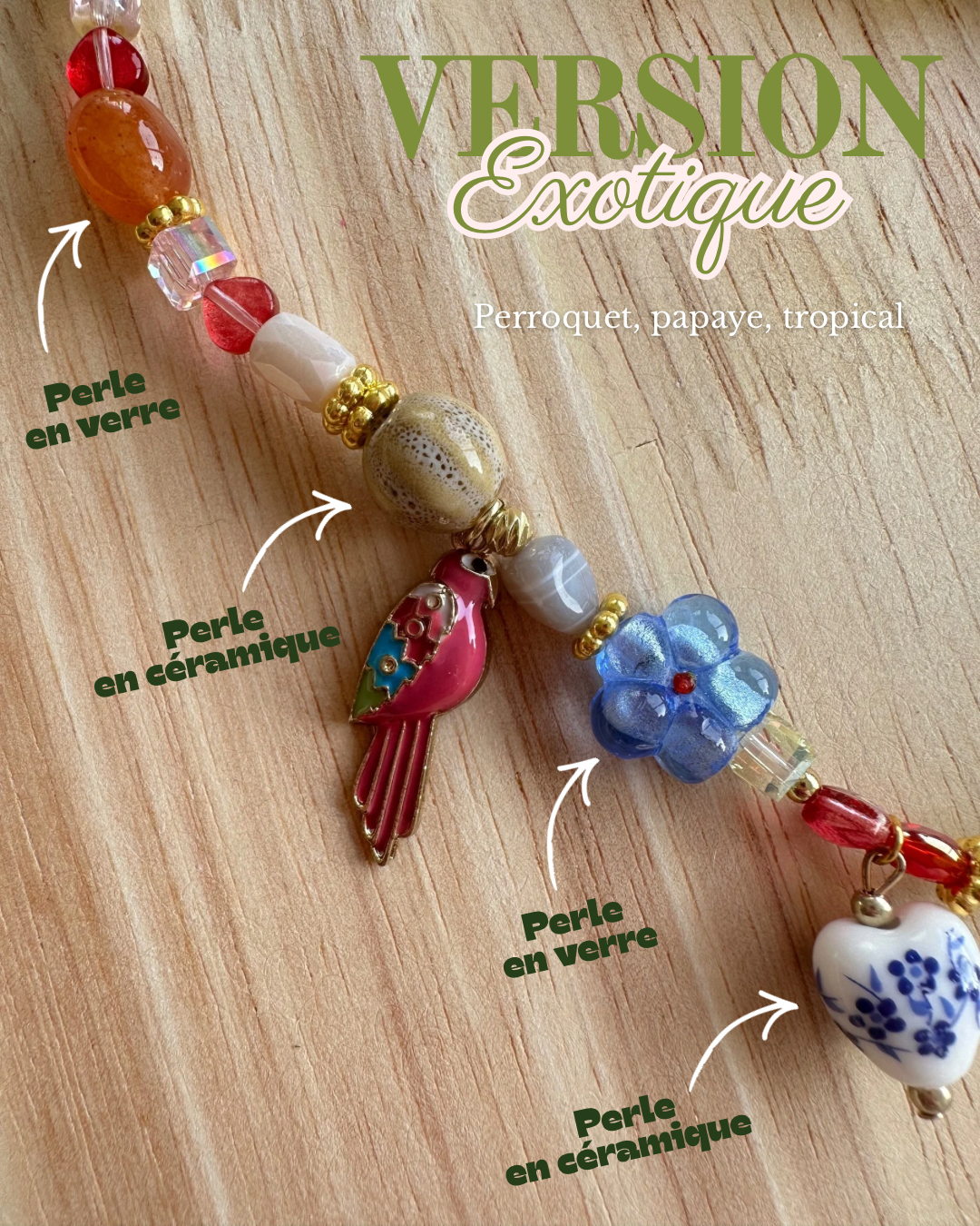 🌴 Version Exotique : perroquet, papaye, esprit tropical et couleurs vibrantes.
