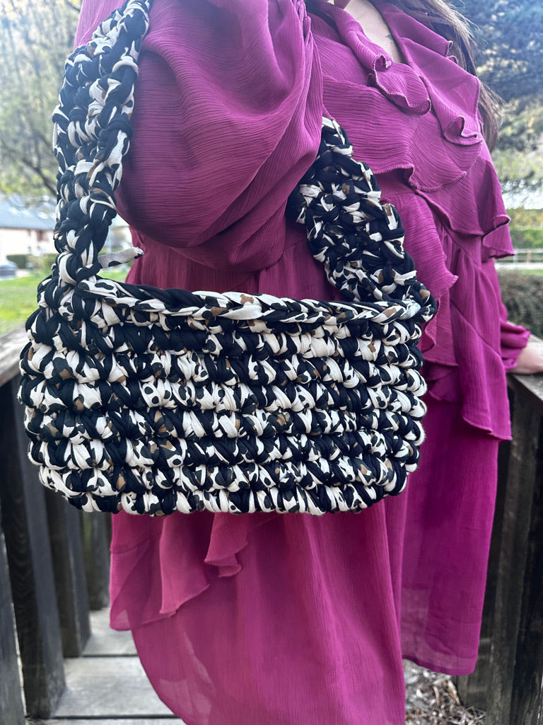Un sac qui a du caractĂšre ! CrochetĂ© Ă la main avec un fil imprimĂ© lĂ©opard, il mixe vibes sauvages et esprit bohĂšme. Petit mais stylĂ©, il donne du punch Ă toutes tes tenues âš